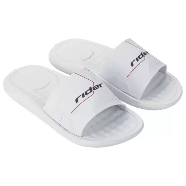 Las chinelas Rider Step Slide están fabricadas en material sintético de alta resistencia, con una parte superior serigrafiada y un diseño inspirado en el estilo de vida deportivo. La suela de goma proporciona buen agarre y estabilidad, con un estampado texturizado para mayor tracción. Su forma ergonómica garantiza la comodidad del pie. La marca Rider está presente con un discreto logotipo en la tira. Este modelo es ideal para el día a día